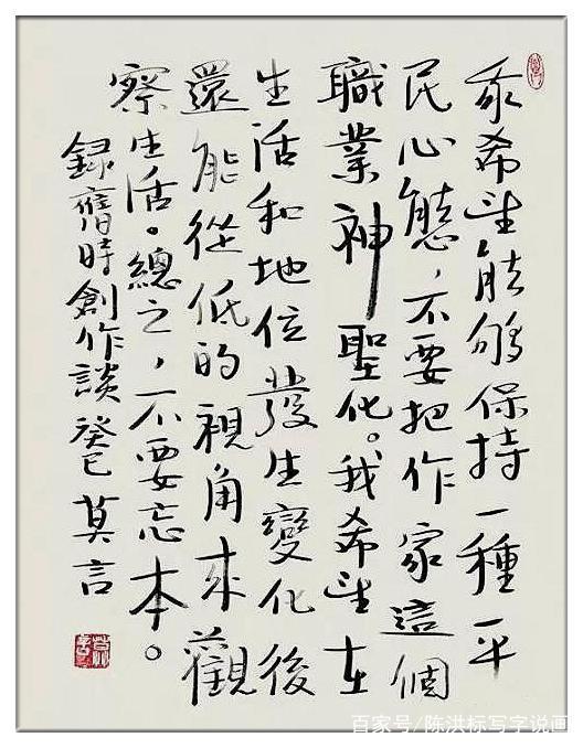 莫言的书法延续了钢笔字的飘逸潇洒的风格,更多的人喜欢他的手札和书信,可以说他的硬笔书法比软笔书法更能体现他的文化内涵和修养。