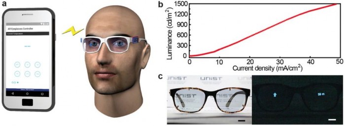 他们还进一步开发了一套带有印刷透明OLED镜片的AR眼镜,该镜片能够响应智能手机的无线控制:研究人员还表示由于这些e-jet打印机只有一个打印喷嘴,因此这种方式能够提高制作效率。他们还认为,由于对水和氧气的渗透性较低,新型可印刷封装材料可能能够提高这些OLED屏幕的使用寿命。