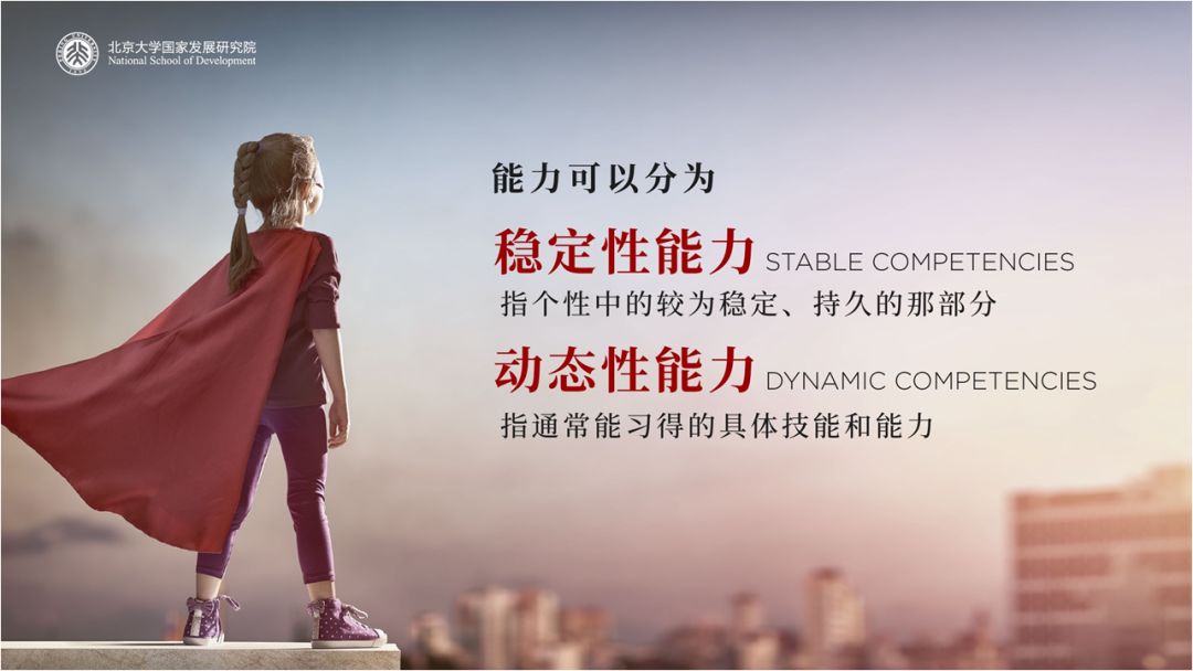 那我们就需要大家理解,能力本身有两部分:一部分是指个性中较为稳定、持久的那部分,我们称之为稳定性的部分;一部分是指通常能习得的具体技能和能力,称之为动态性的部分。我们之所以可以让自己变得更加强大,就是因为能力具备动态性的这个部分。