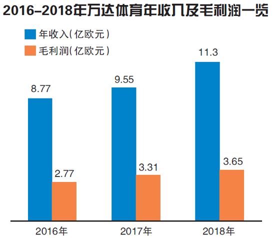 虽然成立不足四年,但万达体育的业绩数据颇为亮眼。招股书显示,2016-2018年,万达体育年收入分别为8.77亿欧元、9.55亿欧元和11.3亿欧元;毛利润分别为2.77亿欧元、3.31亿欧元和3.65亿欧元;毛利率为31.6%、34.6%和32.4%。