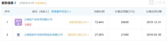 股转之前,上海新昇的股东只有两家,一个是上海硅产业,持股72.44%;另一个则是上海新阳,持股27.56%;转让之后,上海硅产业的持股比例已高达98.5%,近似全资控股;上海新阳则持股1.5%。