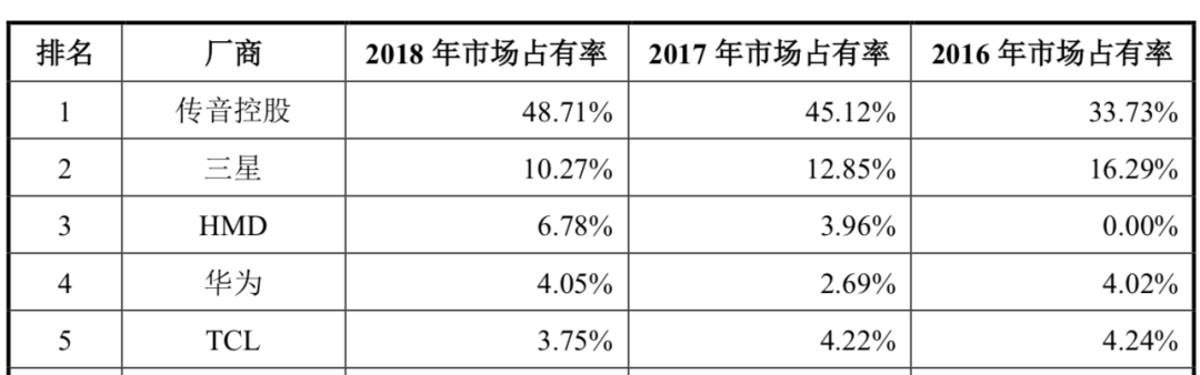 从全品类手机来看,2018年传音手机出货量高达1.24亿部,这样的成绩在全球手机品牌厂商中仅次于华为,排名第四。