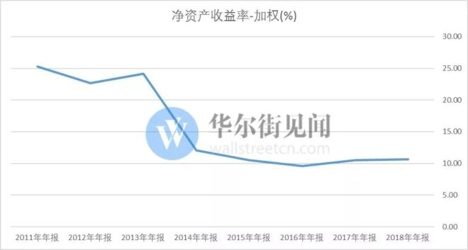 而这样操作的代价,在利润表上看不出来,ROE却显示的清清楚楚:
