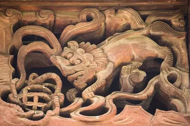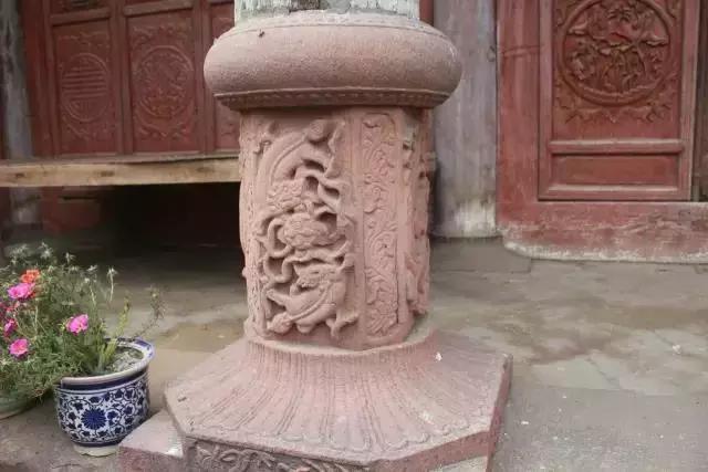 房屋前檐下,繁复精美的雕刻似锦繁花、飞禽走兽,形态逼真。前墙有四个木柱,木柱下端各有0.8米高雕有各种吉祥图案的八棱红石墩,石墩上雕刻有二龙戏珠、双狮滚绣球等精致图案。室内由金砖铺地,这是一种带有金色点状的小条石,是皇帝钦赐的石材,显示主人的贵族身世。