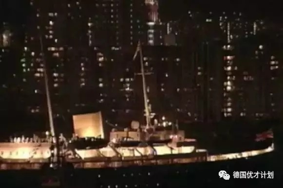 查尔斯王子在不列颠尼亚号上回望岸边,“港督”彭定康的三个女儿哭成泪人