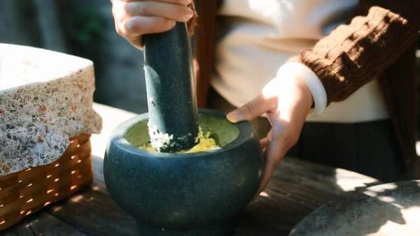 3.将捣碎的生姜装入纱布袋中,挤出姜汁
