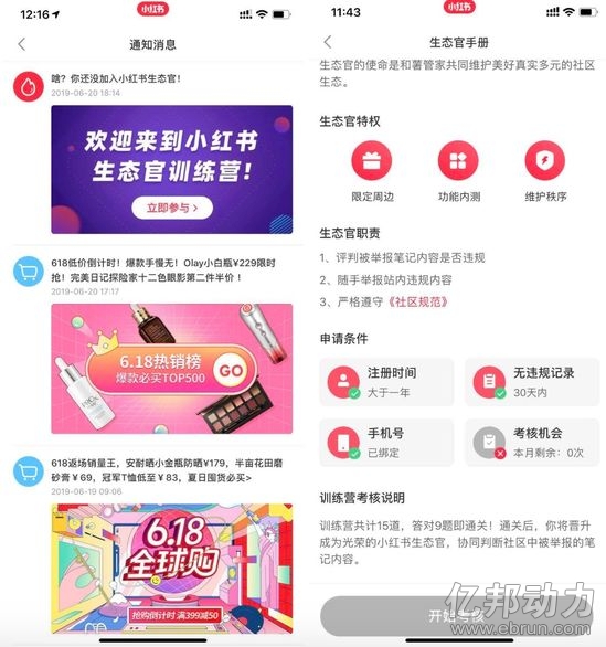 据悉,“小红书生态官”目前为邀请制,达到一定条件(如下图)的用户,会在小红书App的消息通知中收到官方内测的“生态官训练营”邀请。用户点击进入邀请通知后,需通过答题审核才能正式成为生态官。
