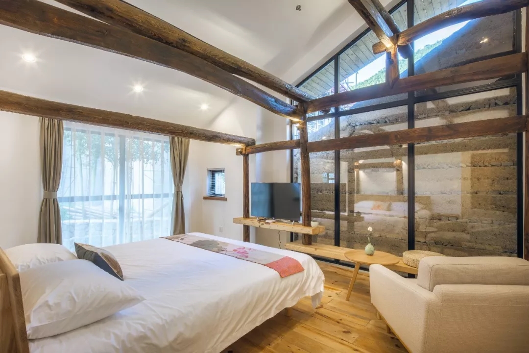 导读:桐庐云夕戴家山乡土艺术酒店位于浙江桐庐县莪山乡戴家山村,是由一栋普通畲族土屋改造的“民宿”,同时也是具有现代化酒店设施和服务的“乡土艺术”精品酒店。