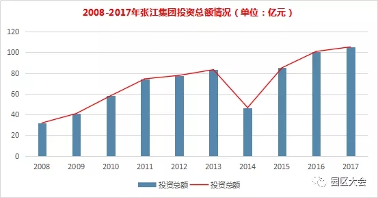 张江集团投资总额从2008年的31.8亿元增加到2013年的83.2亿元,总量增加了约51亿元,但是2014年突然降到了46.6亿元,下降了43.97%;从2015-2018年投资总额又是一个新的增长时期。