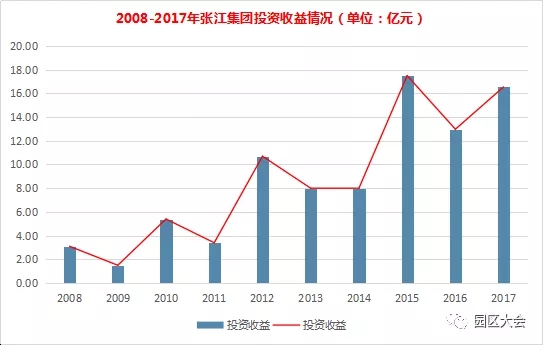 张江集团早期依赖于土地销售获得收入,到后来主要依赖于物业销售和物业租赁的发展过程也是多数园区发展的过程;但是张江集团除了园区开发经营收入这一板块,股权投资收益近年来占据越来越重要的位置。