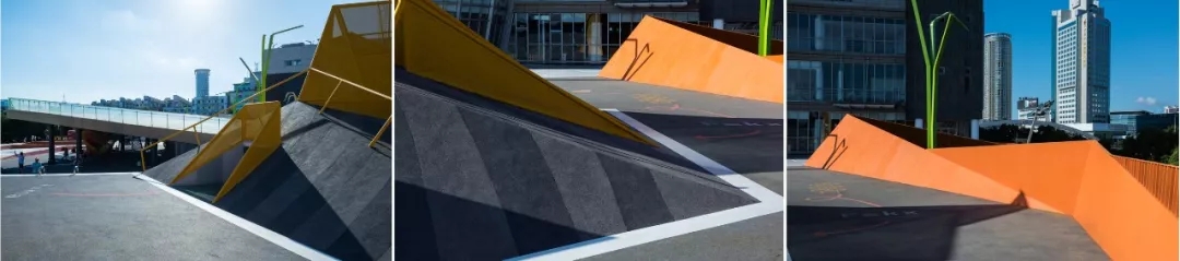 第一刀是对停车场进行全方位改造。把这六七千方的场地,变成一个有鲜明主题的公园,以她的激情活力与参与度,让它本身就成为一个目的地。同时还让它和市政公园连成一体,在功能和形式上都形成互补。三级台地的高差更是精微手术的关键点。