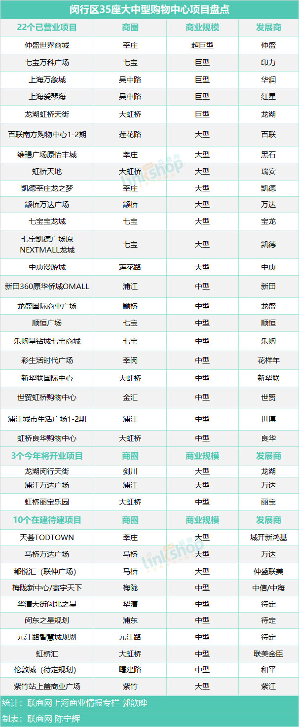 据中商数据统计,闵行区目前已有22座单体面积在7万方以上的大中型购物中心开幕,3座大中型购物中心即将开业,另有10座大中型购物中心规划待建,赢得全市大中型购物中心数量与面积双冠王的闵行区无疑已成为上海购物中心竞争最充分的区域,每个版块均规划有大型购物中心,从优质项目聚集度来看,仲盛、凯德、黑石、新鸿基四大巨头汇集的莘庄商圈最有望成为闵行最闪耀的商业中心。