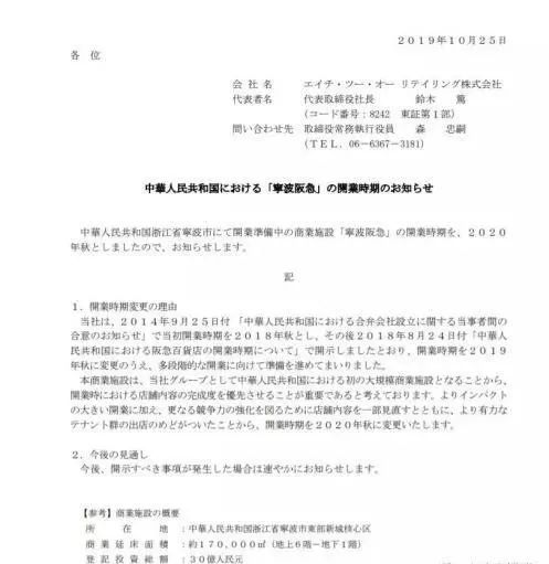 至于个中原因,日本H2O公司的这篇官宣中称:“重要的是开业时店铺内容的完成度,需要更有冲击力的大型开业,为了进一步强化竞争力,我们将重新审视部分店铺内容——将开业时间更改为2020年秋天。”