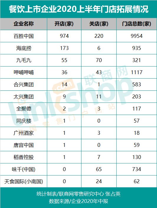 据联商网零售研究中心统计,13家餐饮上市企业(中科云网和西安饮食未公布门店信息)今年上半年共新开门店1267家,关闭门店453家;截至2020年6月30日,13家餐饮上市企业门店总数为14290家。