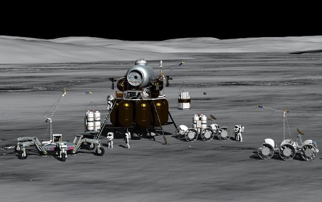 NASA的牵牛星号登月舱。该月面着陆器设计为月球开发的首个机器,能够向月球及在月球表面运输15公吨的设备。一旦登月站建成,人类就可以在月球上开采原料等等。