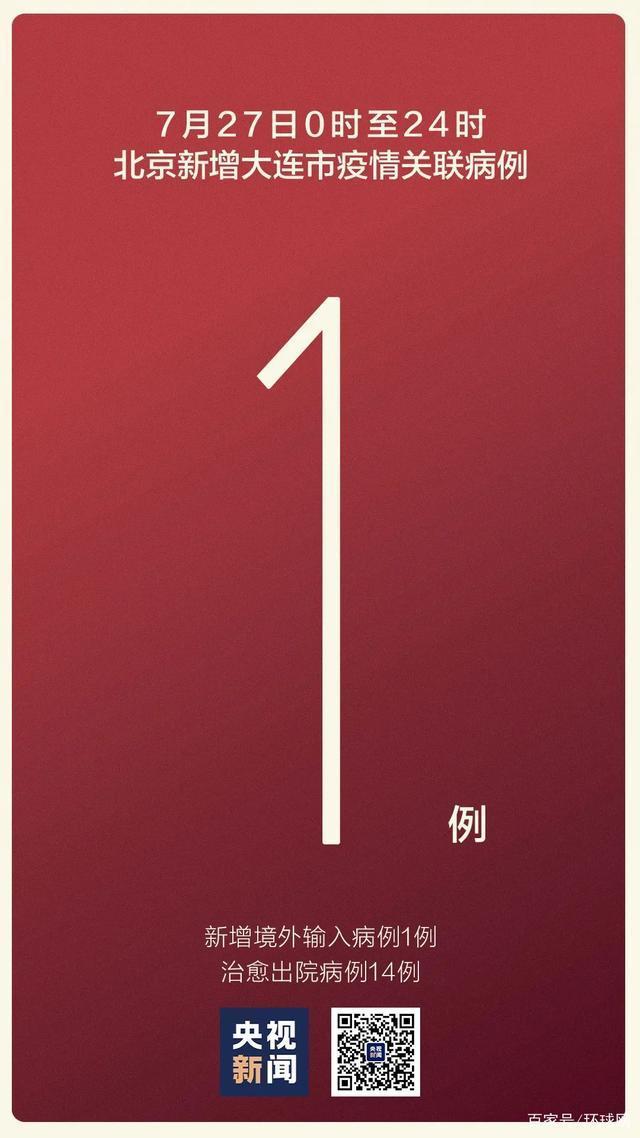 7月27日0时至24时,北京市新增境外输入病例1例、大连市疫情关联病例1例。
