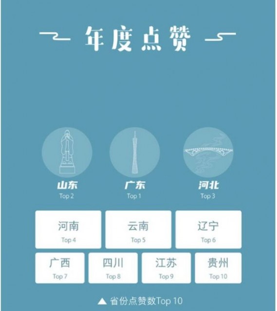 2019年,快手平台上获得点赞数最多的十个省份分别是广东、山东、河北、河南、云南、辽宁、广西、四川、江苏、贵州;城市点赞数前十位分别是北京、广州、成都、哈尔滨、临沂、重庆、沈阳、长春、石家庄、东莞,地域分布较为均衡,打破了以往快手用户更多分布在北方和下沉市场的刻板印象,展示出一幅纵贯南北、横贯东中西部的快手全景图。