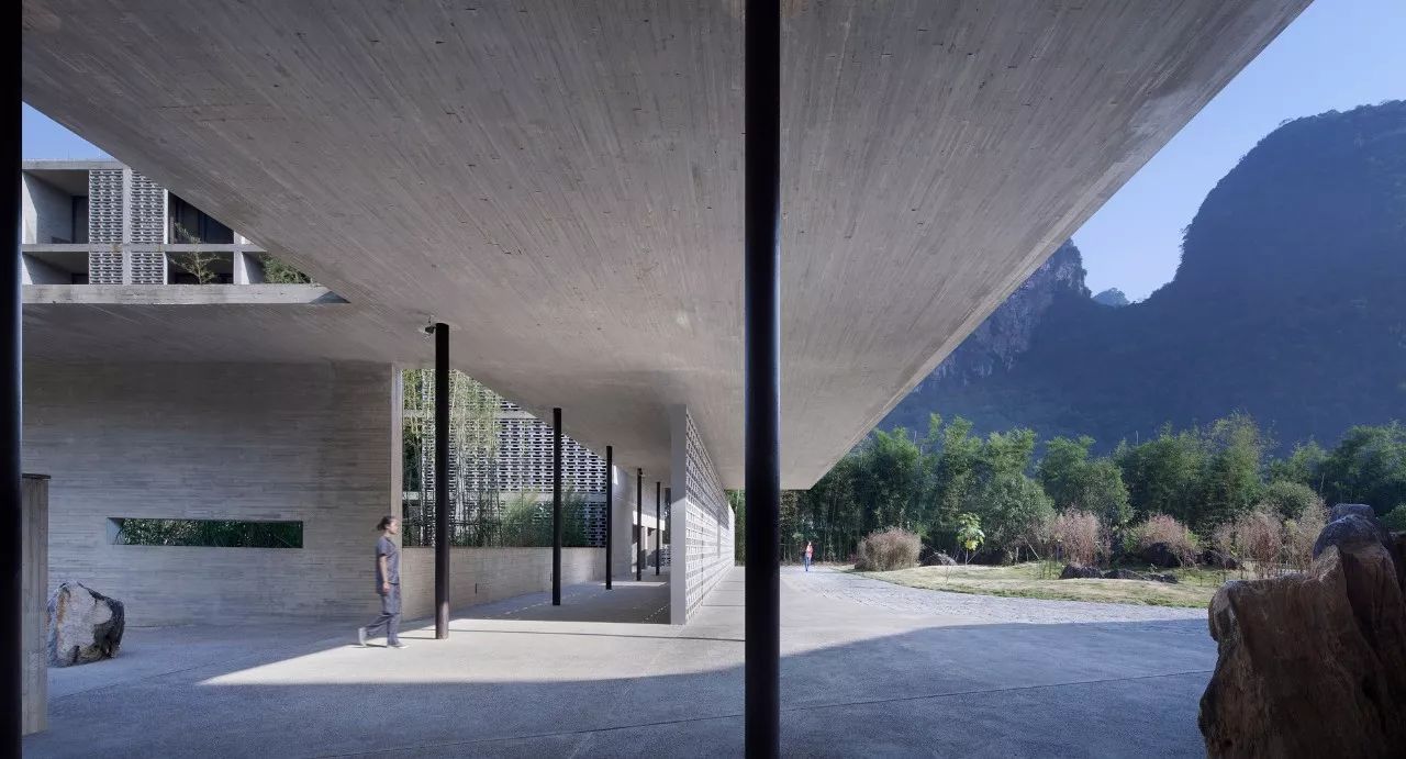 这里独特的喀斯特地貌形成了青山连绵和逡巡其间的蜿蜒漓江,糖舍在这幅犹如水墨画的风景中如遗世独立般地存在。场地内自然景观丰富,并保留有上世纪60年代建造的老糖厂和同时期用于蔗糖运输的工业桁架。