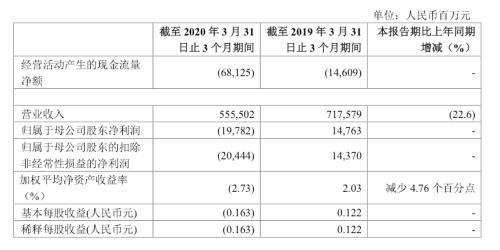 2020年一季度,中国石化实现营收5555.02亿元,同比下降22.6%;净亏损197.82亿元,去年同期为盈利147.63亿元。2019年,中国石化实现营收2.97万亿元,同比增长2.6%;归母净利润为575.91亿元,同比下降8.7%。