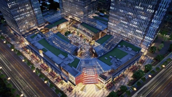 据悉,改项目外部打造了上海罕见的形似大阪难波公园的退台花园,每一层都设置了空中花园景观,内部则采用双首层概念,并以充分结合南翔悠久的历史文化元素,打造寓意“鹤鸣、鹤舞、鹤栖”的三大中庭广场和双下沉式广场。