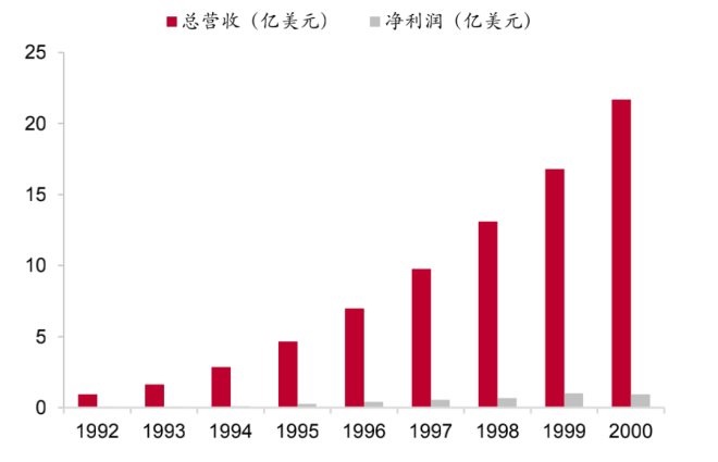 图:1992-2000年星巴克营收和净利润(来源:公司公告、中泰证券研究所)