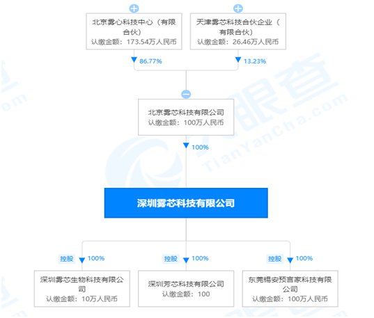 ·天眼查网站显示的深圳雾芯科技有限公司股权穿透图。