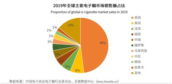 ·2019年全球电子烟市场销售额中,美国占比接近50%。