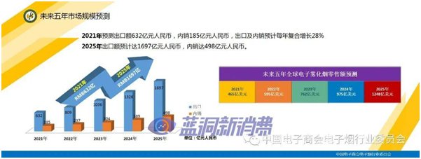 而展望未来5年市场规模,报告预计,至2025年,我国电子烟出口额将达1697亿元人民币。千亿级的市场正在形成。