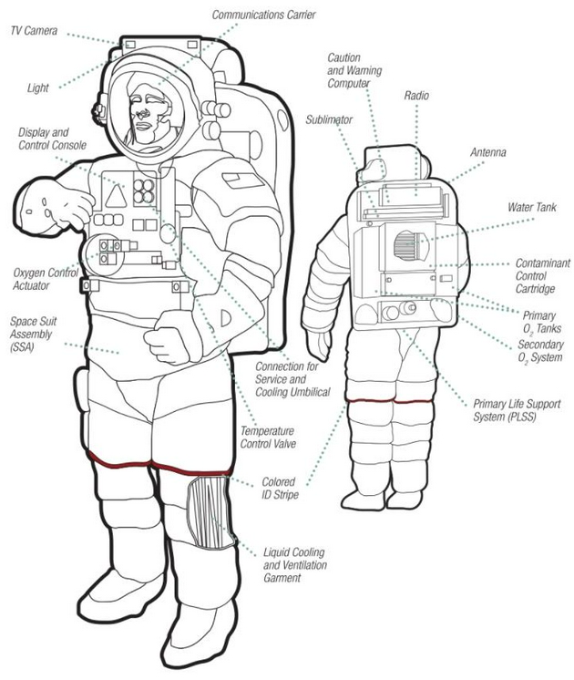 · 提供完成特定任务所需的配件,例如在太空行走期间,修理和安装模块所需要的专门工具,其中一些必须嵌入到太空服内部或放置在太空服上;