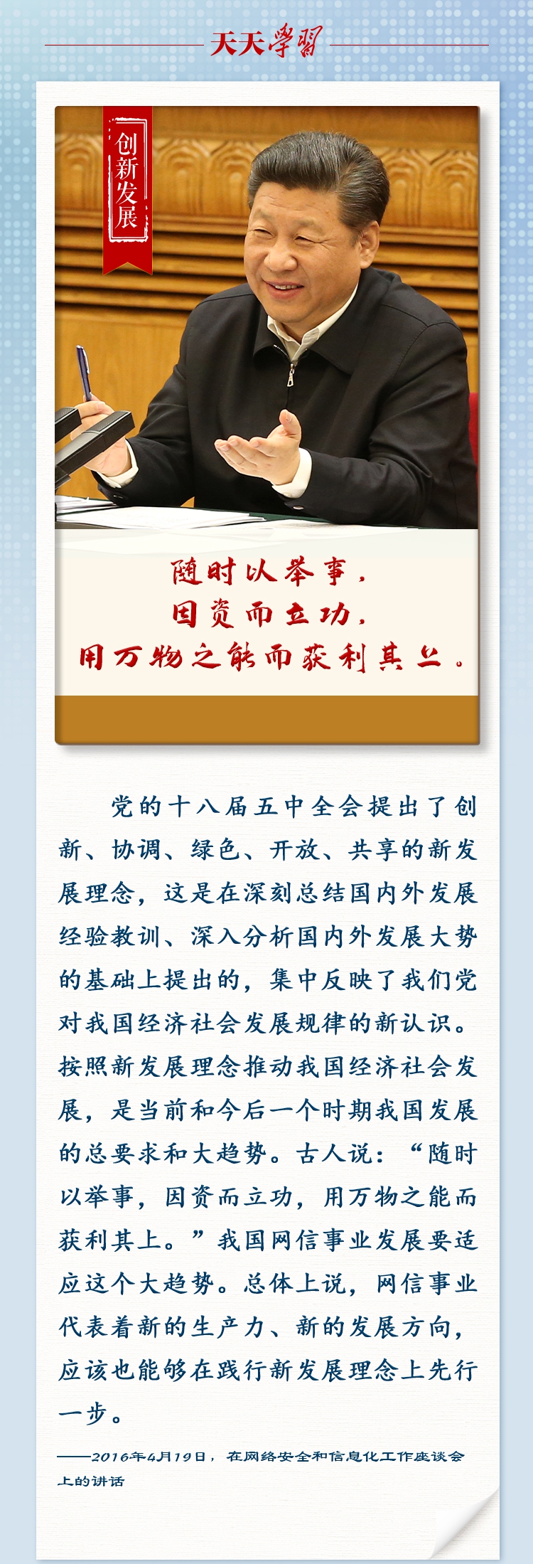 导读:习近平总书记围绕网络强国建设发表了一系列重要论述,并引经据典加以阐述,赋予这些典故鲜活的时代价值。央视网《天天学习》与您一起回顾学习。