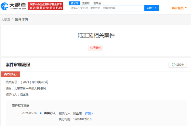 6月9日消息,天眼查App显示,近日,陆正耀被北京市第一中级人民法院列为被执行人,案号(2021)京01执763号,执行标的逾12亿元。据悉,陆正耀为瑞幸咖啡创始人,名下还有神州优车、神州租车等多家公司。