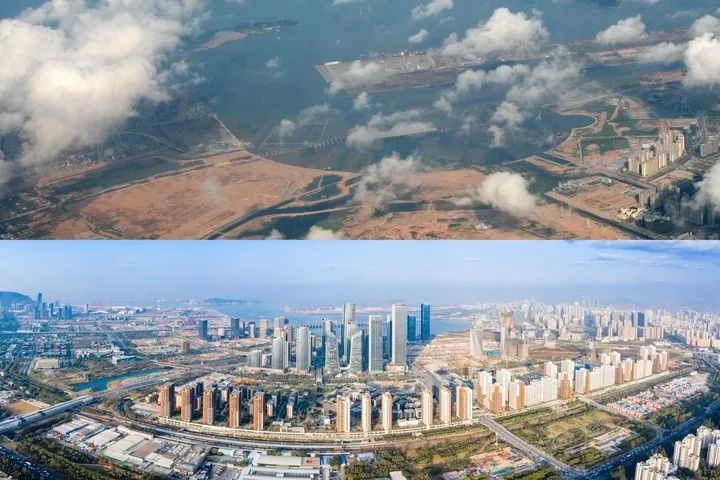 从一片滩涂到高楼林立,前海已累计实现226栋建筑主体结构封顶,累计建成84条(段)市政道路。