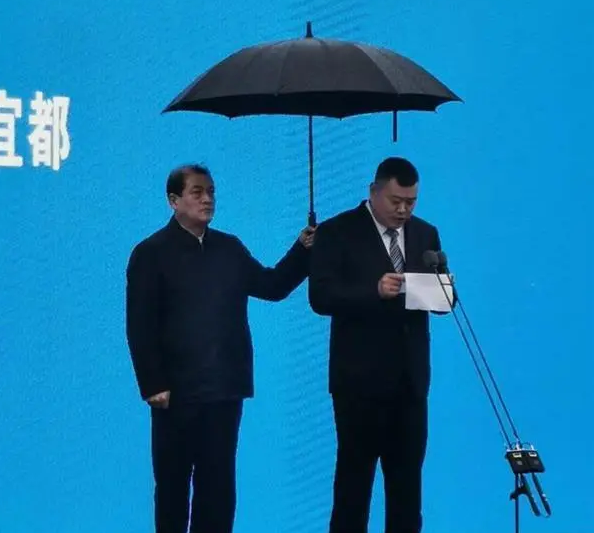 今年11月5日上午,湖北省宜昌市重大项目集中开工仪式在雨中进行,当主持人念到“请宜昌兴发集团有限责任公司总经理袁兵发言”时,袁兵把手中雨伞递给工作人员,双手拿着发言稿,站到话筒前。时任宜昌市委书记的王立当时站在袁兵右侧。见状,他快步走到袁兵身后,左手高举雨伞,为袁兵遮雨。