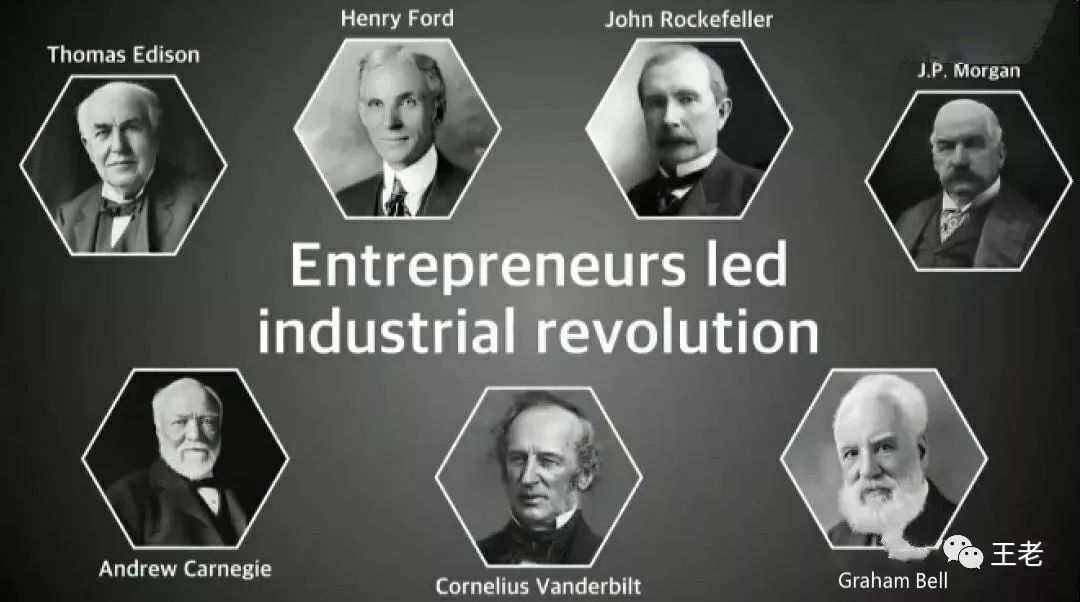 工业革命,工业革命是一个过程,伟大的改变也是一个过程。但为什么工业革命会发生呢?因为他们,因为这些企业家,他们带领了工业革命,因为企业家的精神造就了工业革命。所以改变世界只需要几个人,他们都是英雄,当时的英雄。