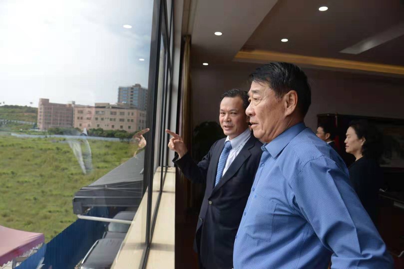 刘源上将(右)在欧贵成副总裁(左)的陪同下了解产业园用地情况