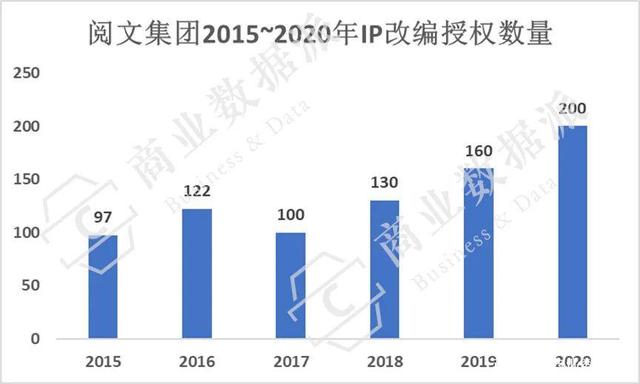 ▲从2015年到2020年,阅文集团IP改变授权数量增长了一倍
