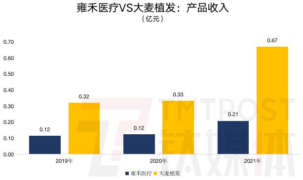根据招股书,2019年至2021年,大麦植发营收分别为7.47亿元、7.64亿元、10.21亿元,雍禾医疗为12.24亿元、16.38亿元、21.69亿元,从营收规模来看,大麦植发的发展至少落后于雍禾医疗3年时间,不止如此,在盈利能力上,大麦植发也落了下风。