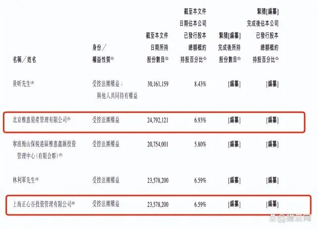 此外,雅惠投资合计持股6.93%,正心谷资本持股6.59%。