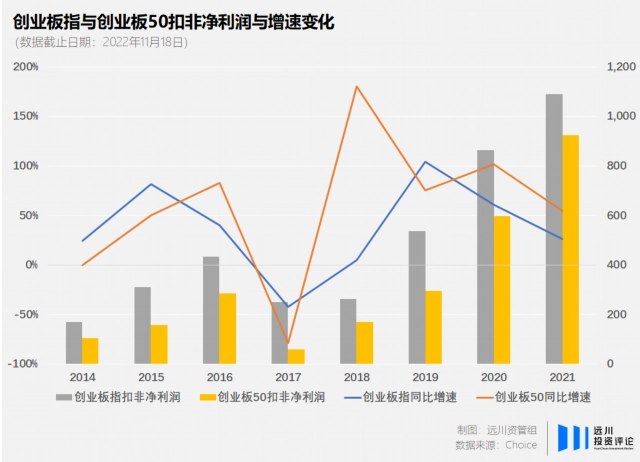 从扣非净利润上可以看到,在2018年,创业板50指数的扣非净利润相较创业板指率先实现大幅增长,而且在2019年后增速始终高于创业板指。