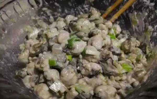 配料:生蚝 250克、鸡蛋 4个、精盐 适量、鸡精 适量、小麦粉(标准粉) 适量、细香葱 适量、花生油 适量