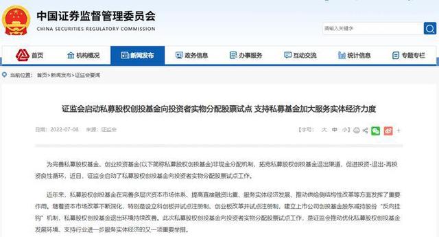 私募、创投可向投资者实物分配股票?证监会启动最新试点,业内人士称“太高兴了”