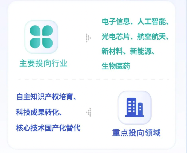 主要投资行业为电子信息、人工智能、光电芯片、航空航天、新材料、新能源、生物医药;重点投向自主知识产权培育、科技成果转化、核心技术国产化替代等领域。争取中央和省政府投资引导基金联动支持秦创原以及区县、开发区(含西咸新区)发起设立区域子基金,支持西安市产业链协同、创新创业和“专精特新”企业发展。