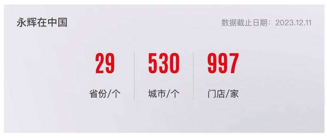 这是永辉官网显示的数字,统计截至日期为:2023年12月11日。