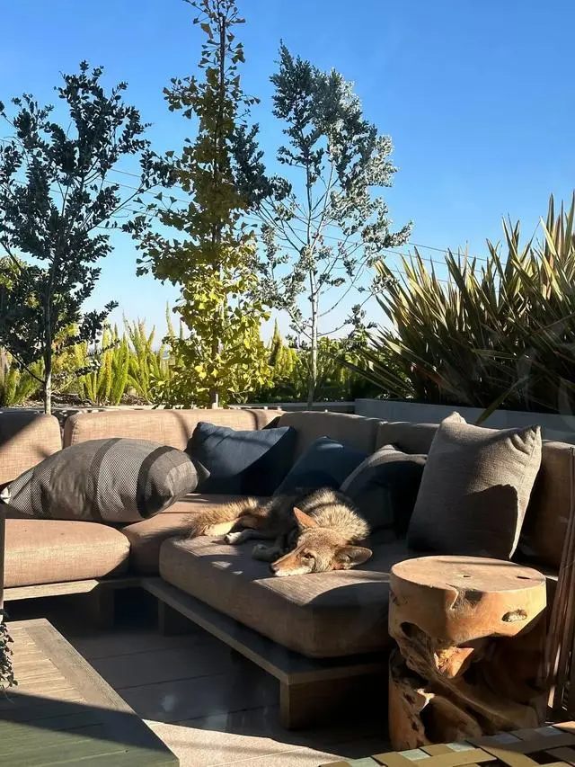 奥特曼拍到一只狼侵入他的家,躺在沙发上。