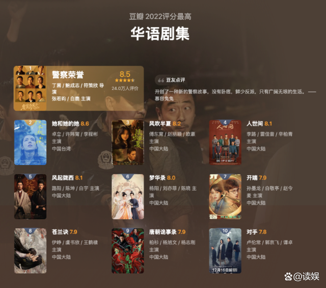 2022豆瓣评分最高TOP10中,爱奇艺占据7席