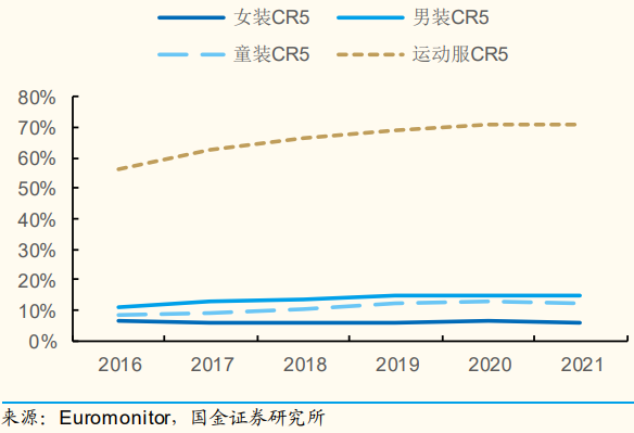 与运动服饰、男装、童装这类款式、风格设计选择较少的服饰相比,女装市场虽然规模庞大,却是一个极其分散的市场。据Euromonitor统计,在国内运动服饰前五大品牌市场占有率接近70%,男装、童装前五大品牌市场占有率也普遍超过10%的情况下,女装行业前五大品牌的市场占有率仍在10%以下,市场集中度极低。