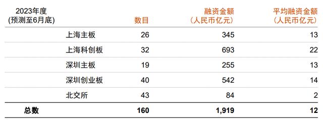 同时,普华永道预计,2023年上半年(截至6月底,下同),A股IPO数量将有160家,融资额将达到1919亿元。