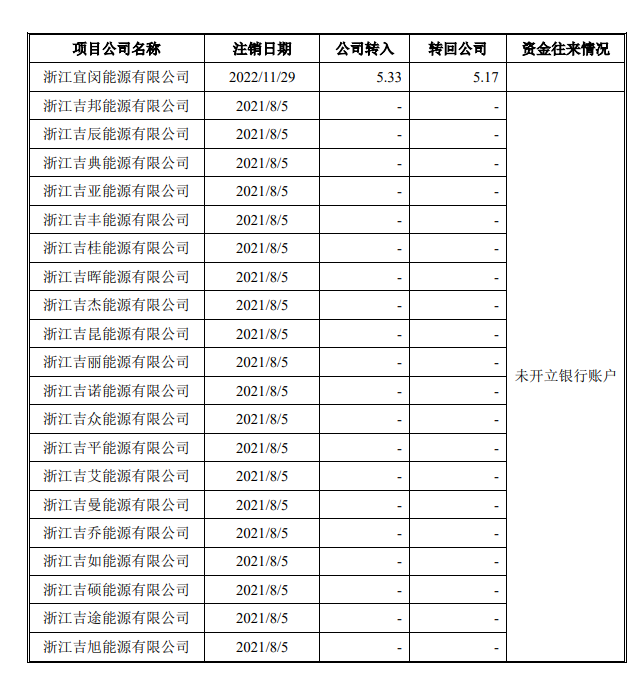 此外,报告期内,晴天科技向锦浪智慧转让大量“鲁”字类、“昱”字类、“宜”字类公司,注销大量“吉”字类公司,相关公司注册地均为锦浪智慧所在地宁波象山。晴天科技称,户用电站业务应客户管理需求设立项目公司,因项目未落地注销较多子公司。