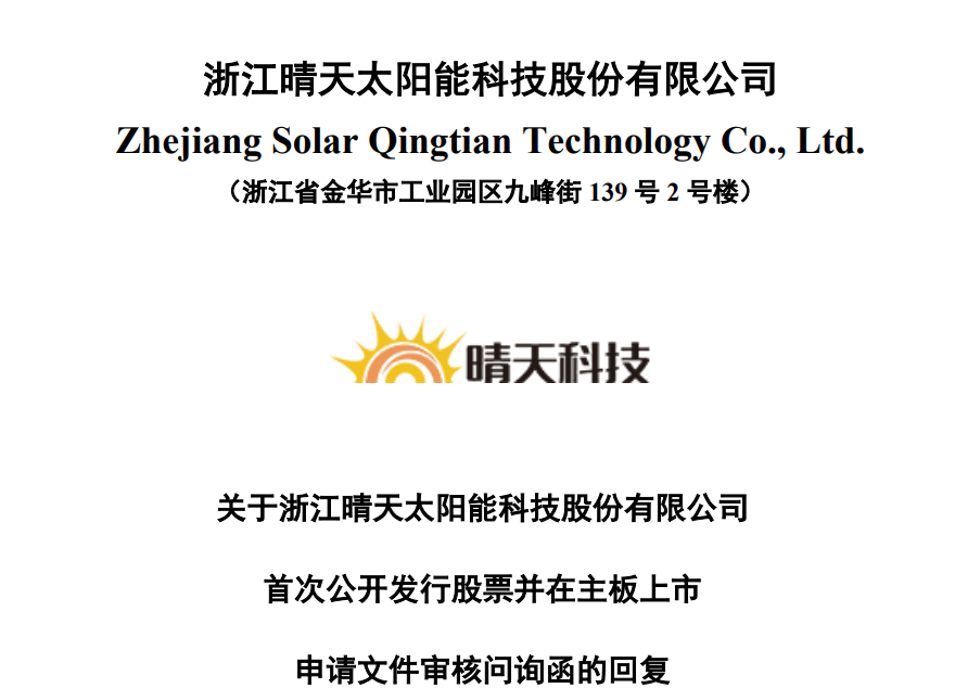 10月13日,浙江晴天太阳能科技股份有限公司(以下简称“晴天科技”)近日回复深交所问询函,回复问题涉及核心竞争力、经营合规性、收入快速增长等十大问题。