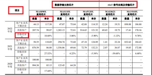 有意思的是,联芸科技披露了与大客户E关联销售的产品型号、金额、占比,还披露了各种型号的数量、单价、差异率,可谓是十分细致。但联芸科技就是对大客户E的名称讳莫如深。